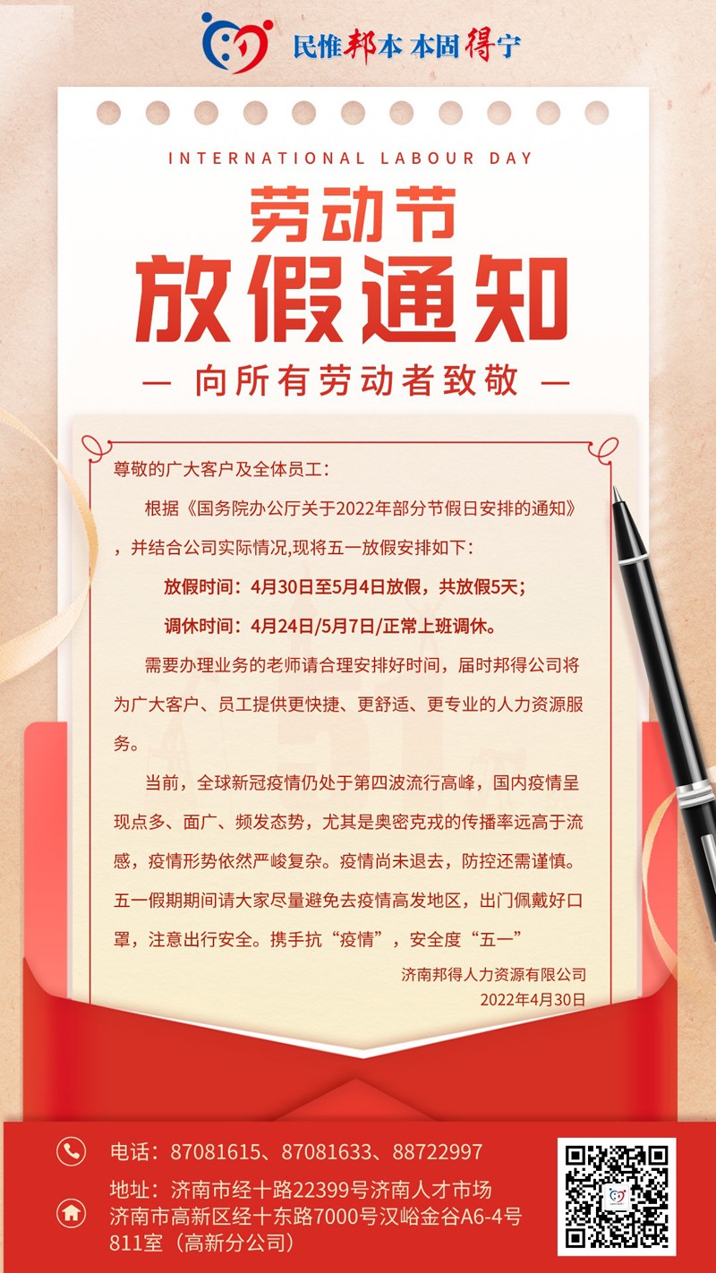- 2024年5月濟南邦得人力資源有限公司高新分公司關于濟南...